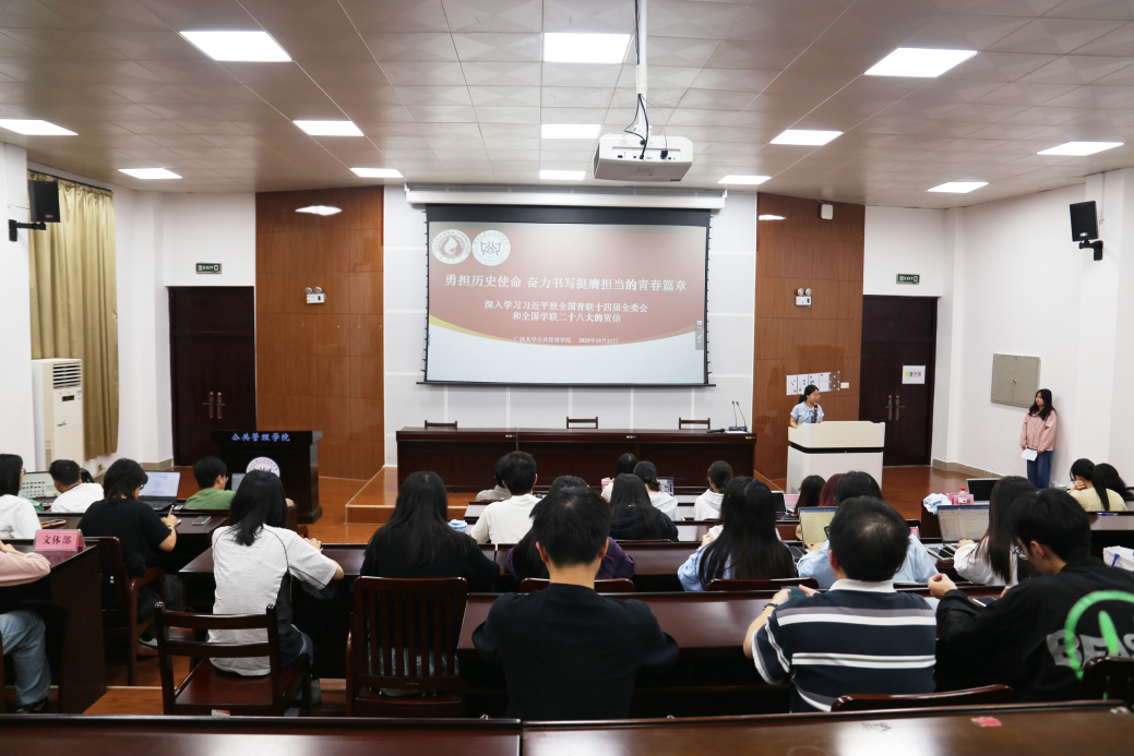 为深入学习贯彻落实习近平总书记致全国青联十四届全委会和全国学联二十八大的贺信精神,引导公管研究生学子明确历史使命、勇担时代责任,2025年10月21日下午,我们研究生会组织开展专题思想理论学习活动,与会师生围绕贺信精神的时代内涵、实践价值及未来践行方向展开系统学习与深入研讨。