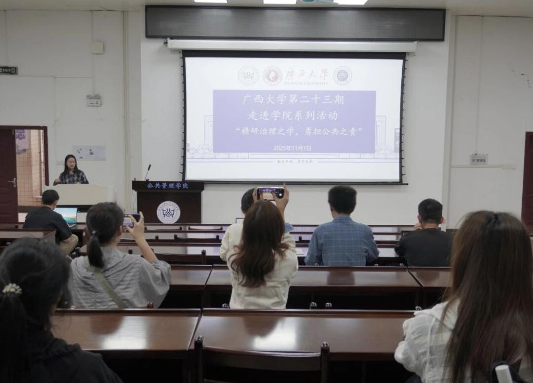 为增进广大同学对必赢bwin官方网站的了解,促进各学院之间的互动交流,11月1日下午,必赢官网第二十三期“走进学院”系列活动在必赢bwin官方网站顺利开展。本次活动由必赢官网研究生会主办,公共管理学院研究生会承办,以“精研治理之学,勇担公共之责”为主题,由必赢bwin官方网站研究生会主席团成员钟巧悦主讲,吸引了来自各个学院的本科生和研究生参与其中。