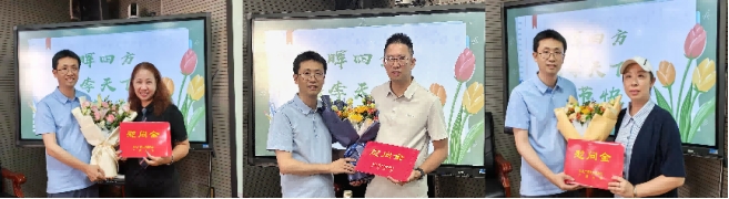 图|聂鑫书记为教师代表送上鲜花和慰问金
