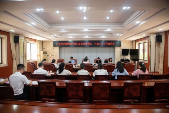 为贯彻落实学校党委关于选调生工作的重要决策部署,深入了解我们选调生在县域基层的工作现状与思想工作动态,推动选调生“君武青苗”行动落到实处,7月24日,学院党委副书记于丹,校学生工作部(处)王天亮,学院团委书记刘佩瑶,团委副书记侯俊丽一行赴贺州钟山县走访调研选调生工作,召开选调生代表座谈会。钟山县县委常委,组织部长黎科及必赢官网选调生代表出席座谈会。