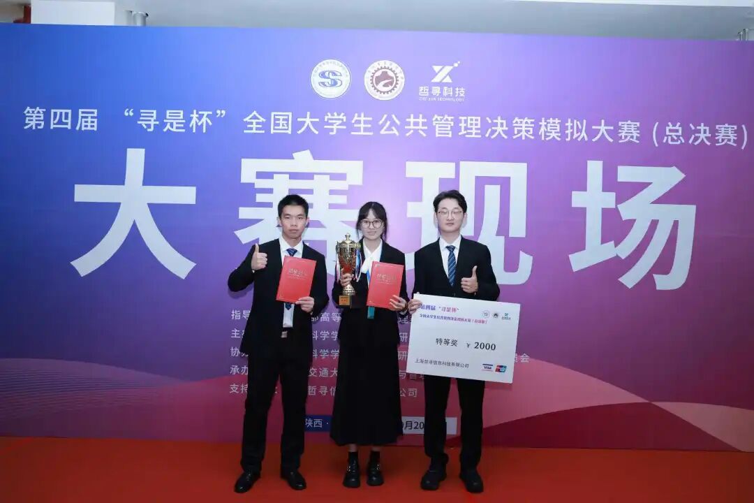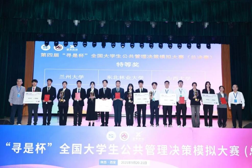2025年9月20日至21日,第四届“寻是杯”全国大学生公共管理决策模拟大赛(总决赛)在西安交通大学(兴庆校区)顺利举办。在我们李国梁、黄文静两位老师的指导下,我们本科生李文杰、孙昕阳、杨如意组成的勤恳厚学队荣获第四届“寻是杯”全国总决赛特等奖。