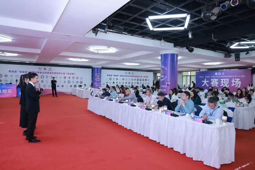 第四届“寻是杯”全国大学生公共管理决策模拟大赛(总决赛)由教育部高等学校公共管理类专业教学指导委员会指导,中国科学与科技政策研究会主办,西安交通大学公共政策与管理学院承办,上海哲寻信息科技有限公司提供支持,16位公共管理学科的知名专家学者(按姓名拼音首字母排序)马亮、孟溦、欧名豪、容志、孙萍、孙涛、谭海波、王欢明、徐晓林、杨宏山、于文轩、郁建兴(评委主席)、章文光、赵志荣、朱正威、竺乾威担任大赛专家评委。