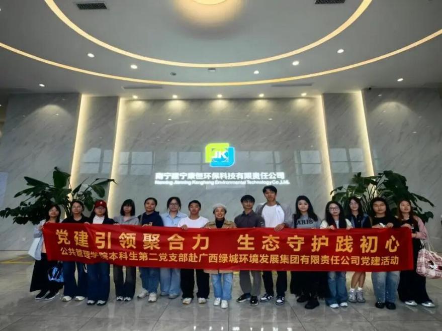 为深刻领悟习近平生态文明思想,以理论赋能实际,创新党建形式,具象理解国家“双碳”战略的基层实践,体会民生工程背后的科技支撑与管理智慧,我们组织师生于10月30日前往广西绿城环境发展集团有限责任公司开展党建活动,在了解生态文明建设成果中强化党员担当,拓宽服务社会的视野,提升组织生活质效。此次活动由院党委专职组织员鞠平凡,学工组辅导员黄文静、陈科旭带队,本科第二党支部发起活动,本科第二党支部及学院其他党支部代表共50余人参与活动。