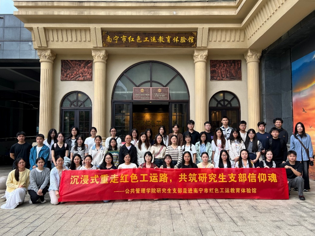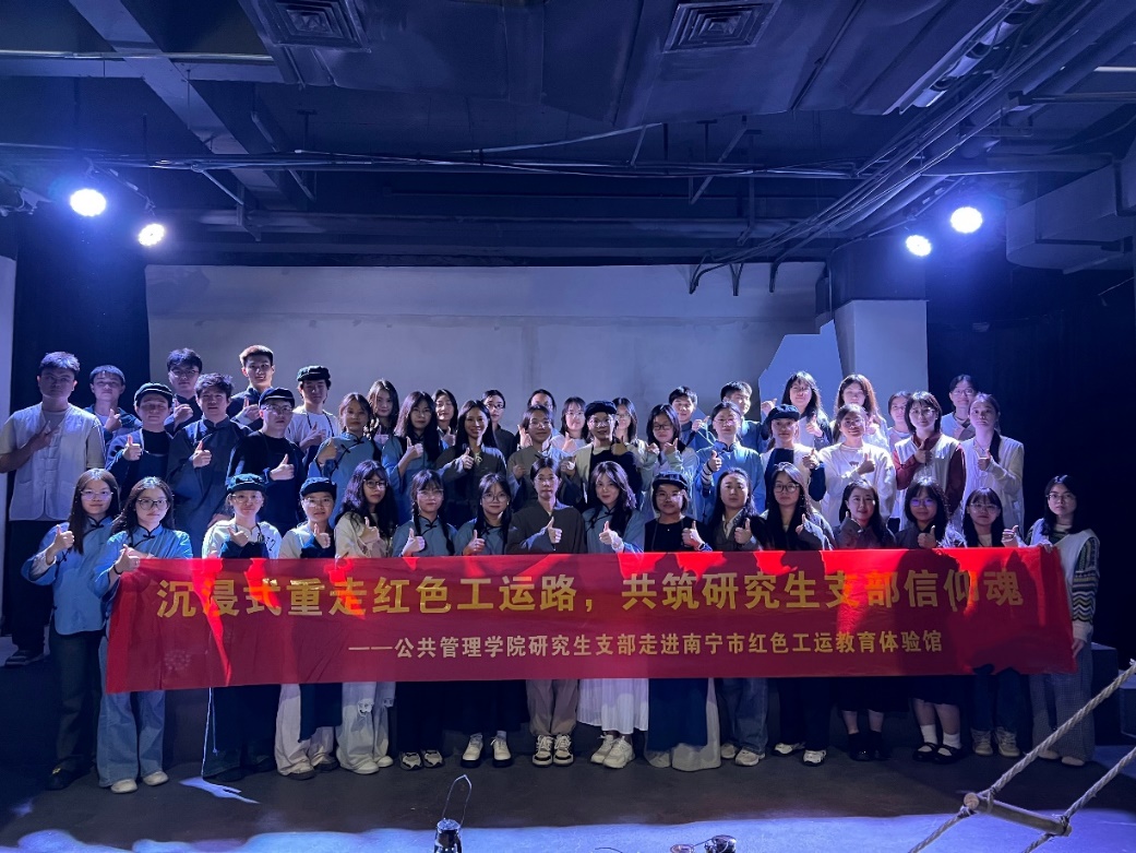 为将党史学习教育与沉浸式实践体验深度融合,11月8日必赢bwin官方网站研究生支部走进南宁市红色工运教育体验馆,开展以“沉浸式重走红色工运路,共筑研究生支部信仰魂”为主题的党建活动。活动通过参观学习、角色扮演、剧情互动等形式,让党员们在“亲历”南宁市电厂保卫战的红色工运史中深化理想信念,凝聚支部力量。