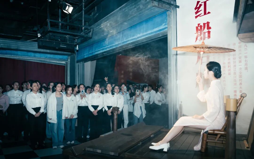 党员化身为“电影剧情参与者”,体验沉浸课堂《红》。电影党建教育基地里,复古的街道布景还原了百年前的时代风貌。支部党员们在具有代入感的专业场景布置中,沉浸式参与演员们演绎的《五四精神》 《红船之上》《我爱你 中国》等红色主题电影的经典情节,主动参与剧情推进、与角色深度对话,触摸历史的温度,让党史学习教育变得鲜活生动、入脑入心。